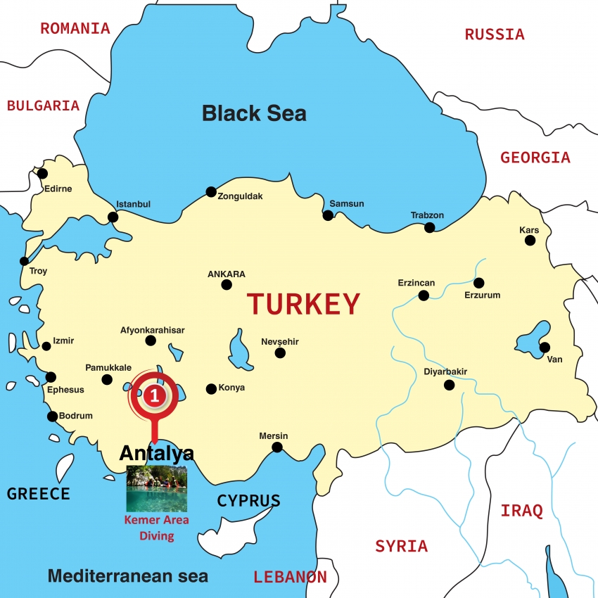 Antalya Scuba Diving: See colourful fish and spectacular coral reef at dive sites around beautiful bays of Kemer bays. Enjoy the services of professional diving guides with training for beginners.