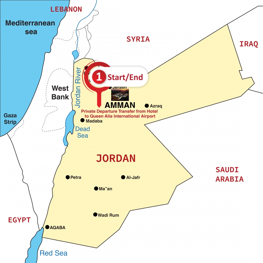 in Petra or Amman to Amman International Airport. Transfer